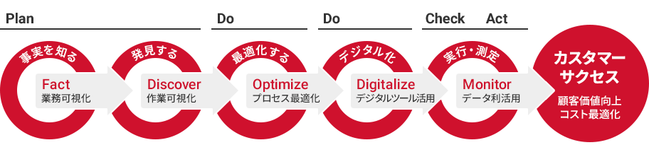オペレーショナルエクセレンスの実現に向け、プロセスの一部ではなく全体で変革するために定型的かつ効率的にプロセスDXを実践する「型」を定義し、デジタル技術とデータを活用した業務プロセス改革に取り組んでいます。