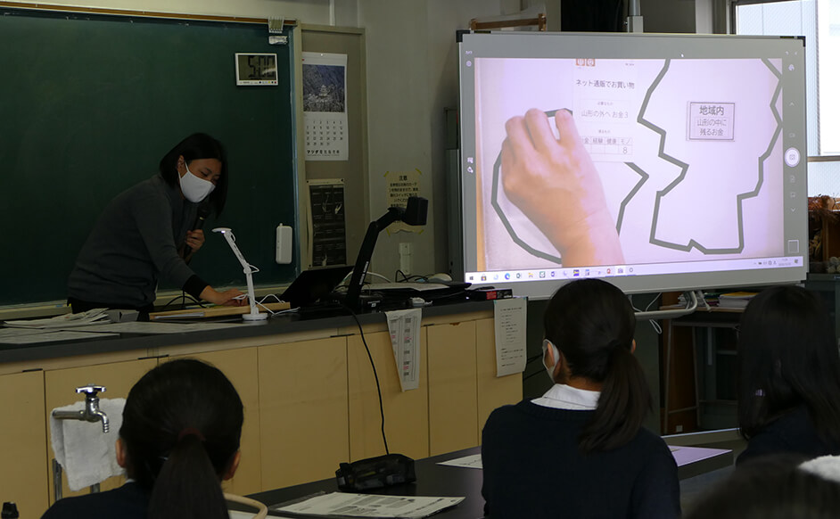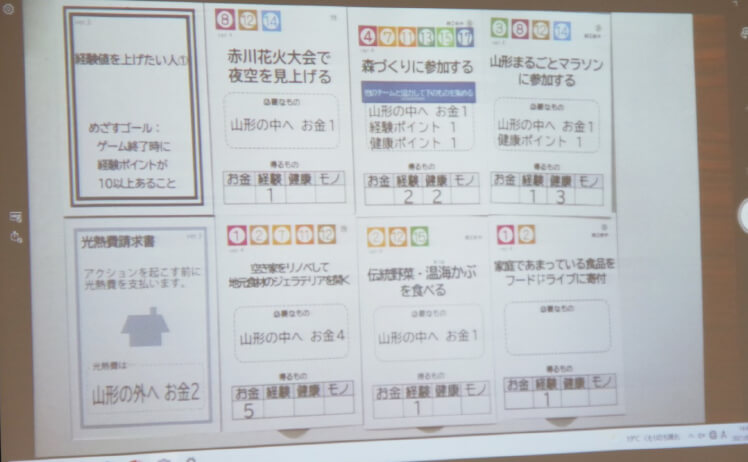 2年生2クラス、1年生1クラス、各50分ずつの限られた時間でのワークショップでしたが、事前の学習がよくできていて、スムーズに進められました。もう少しゲームの体験時間が欲しかったと思いますが、自分たちの行動や選択が山形の地域社会における環境や社会生活、経済活動に影響していることが体感できたのではないかと思います。この経験をこれからの探究学習に活かして欲しいと思います。