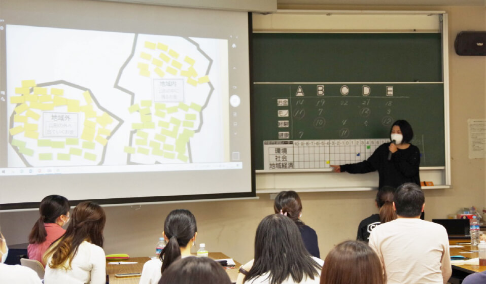 ヨーロッパや北欧などのエネルギー転換が進んでいる地域の取り組みの事例をデータでの把握や地域社会での協働の仕組みなどの理解を通じて、SDGsを理系的な視点、文系的な視点の両方から見ることの重要性を感じてもらいたいと思います。山形県にはSDGsの視点で取り組むべき課題があるとともに解決のための可能性に満ちていることを理解してもらいたいと思います。