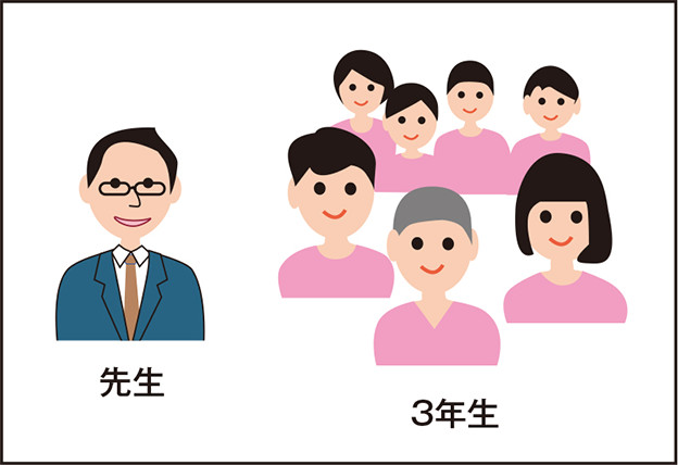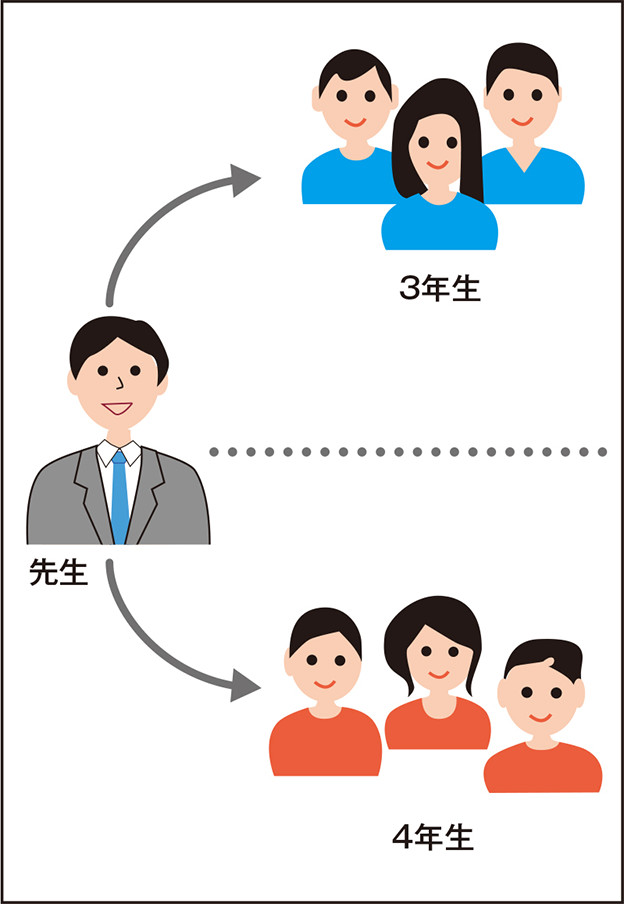 3年生と4年生が1学級になった状態。先生は3年生と4年生を交互に指導(わたり)。