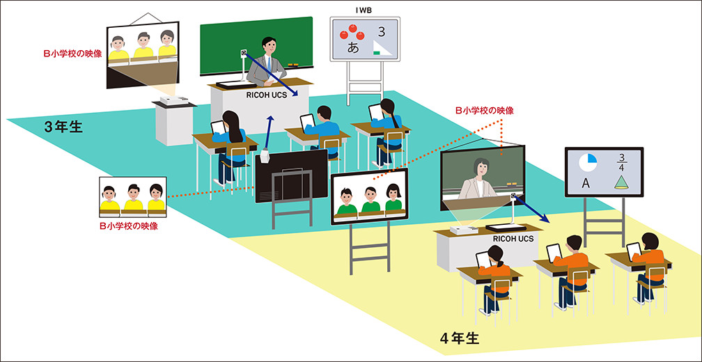 RICOH UCSで、児童の様子を撮影し、B小学校へ配信。