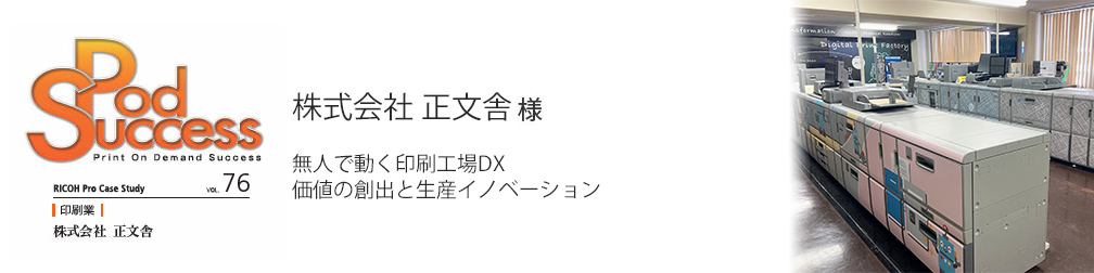 株式会社正文舎は、モノクロプロダクションプリンター『RICOH Pro 8320S』に、MIS(経営情報システム)とRPA(ロボティック・プロセス・オートメーション)を連携させ、印刷DX(デジタルトランスフォーメーション)を実現した『正文舎デジタルプリントファクトリー』(以下、DPF)を開設した。MISに入力された受注情報をもとに、RPAの『リコープリンティングROBO』がに自動的に印刷指示を出すもので、ほぼ無人でRICOH Proが稼動する。主にモノクロの頁物、バリアブル印刷物を生産しており、オフセット印刷のプロセスと比較して倍の生産スピードを達成している。