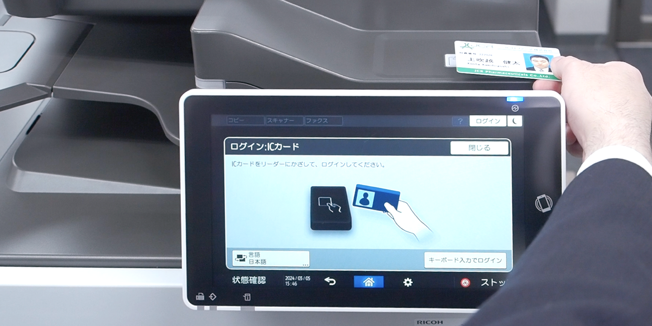「社員証を複合機にタッチしないと印刷されないため、その場から離れなければ印刷物も残りませんし、ログも残されているので、取り残しの処理もしやすくなりました。管理画面もわかりやすく、問い合わせがあれば、電話をつないだまま簡単な操作で確認できます」(上吹越様)
