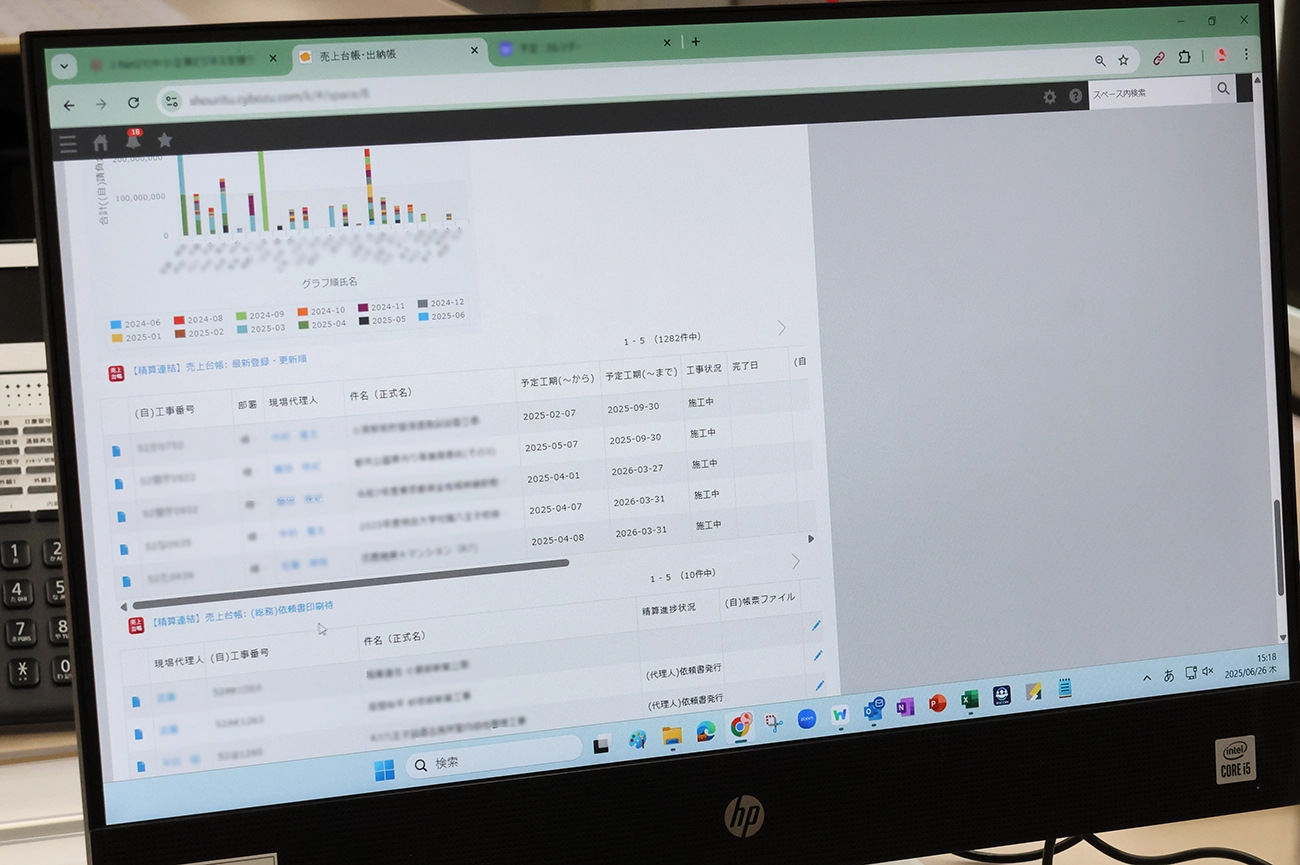 社内DXに伴い、「特に若手社員が積極的にデジタル化を後押ししてくれています。彼らは紙ベースの仕事にモヤモヤしたものを抱えていたらしく、作業日報がスマホで入力できるようになって、非常に喜んでいるようです。年長職人のサポートを担う姿も見られるようになりました」(堀籠様)。