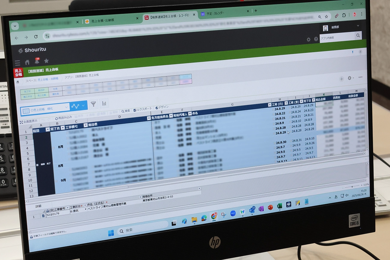 社内DXに伴い、「特に若手社員が積極的にデジタル化を後押ししてくれています。彼らは紙ベースの仕事にモヤモヤしたものを抱えていたらしく、作業日報がスマホで入力できるようになって、非常に喜んでいるようです。年長職人のサポートを担う姿も見られるようになりました」(堀籠様)。