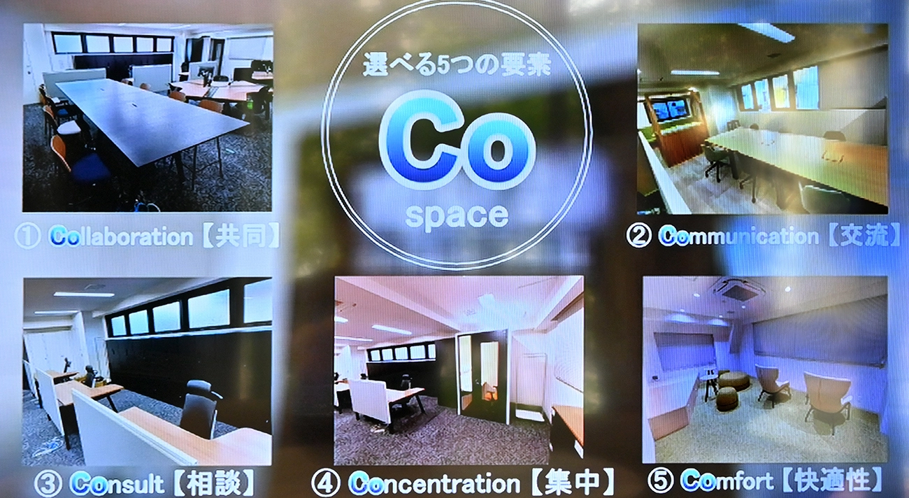 また、従業員にも改めて会社の事業や、同じ会社で働く仲間のことを知って欲しいので、フリーアドレスのどの席からも見えやすい位置に、大型のディスプレイを設置し、新入社員紹介やイベント報告、新事業の情報などを配信しています。