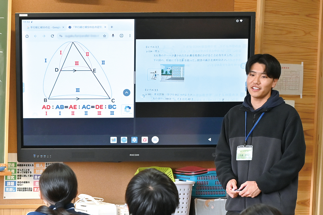 操作がシンプルなので、子供たちのタブレット画面を投影したり、投影した画面に書き込むといったことも手軽にできますし、Google アプリケーションでオリジナル教材も作成できます。男衾中学校の先生方からも好評で、ユニークな授業を多数展開されています。」