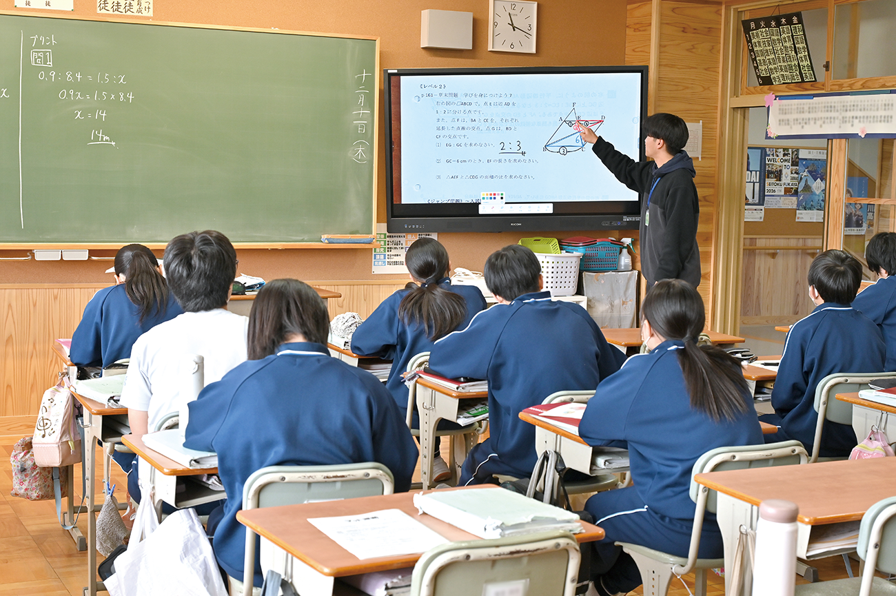 今井様「男衾中学校は伝統的に柔道部と陸上部が強く、世界的大会における柔道の金メダリストやマラソンの元日本記録保持者も輩出しています。また、地域とのつながりが強いことも本校の特長です。学校運営協議会にも協力いただいている『総合的な学習の時間』 の取り組みにおいては、文部科学省の研究校に指定されたこともあり、県内外から注目いただいています。それから、ICT活用についても本校が注力しているところです。以前から積極的に取り組んできましたが、校舎の大規模改修を機に最新の環境が整備されたことで、利活用が一層加速しています。すべての普通教室にRICOH Interactive Whiteboard(旧モデルを含む)を設置し、全教科で活用しています。」