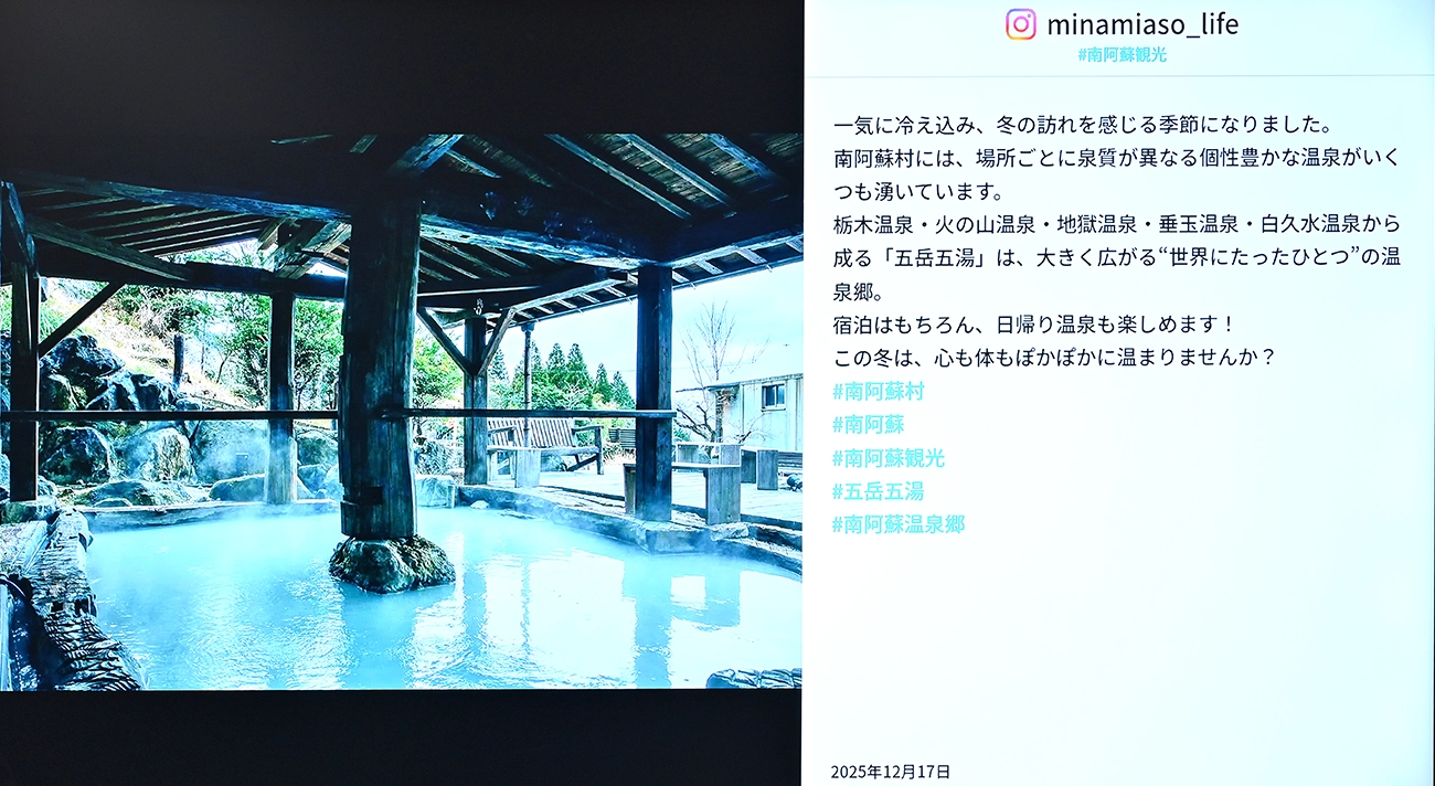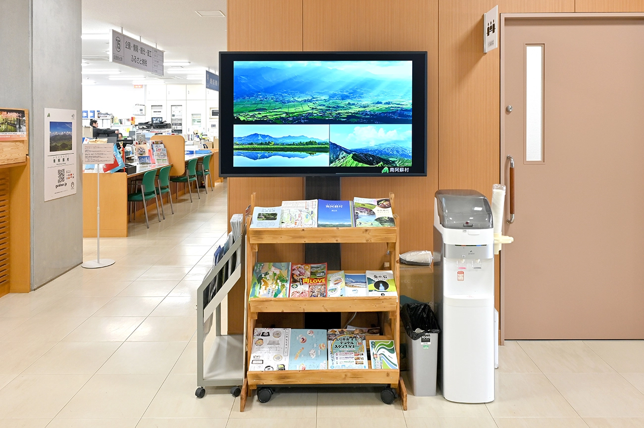 世界最大級の広さを誇る阿蘇カルデラ。その南のふもとに広がる南阿蘇村は、「水の生まれる郷」と呼ばれるほど豊かな水源を有し、温泉の泉質も多彩。清らかな湧水で栽培される農産物や放牧地でのびのびと育つあか牛など、美味しい魅力にも恵まれています。南阿蘇村役場様では、こうした村の魅力をはじめ多様な情報を効果的に配信していくためにリコーデジタルサイネージを活用されています。