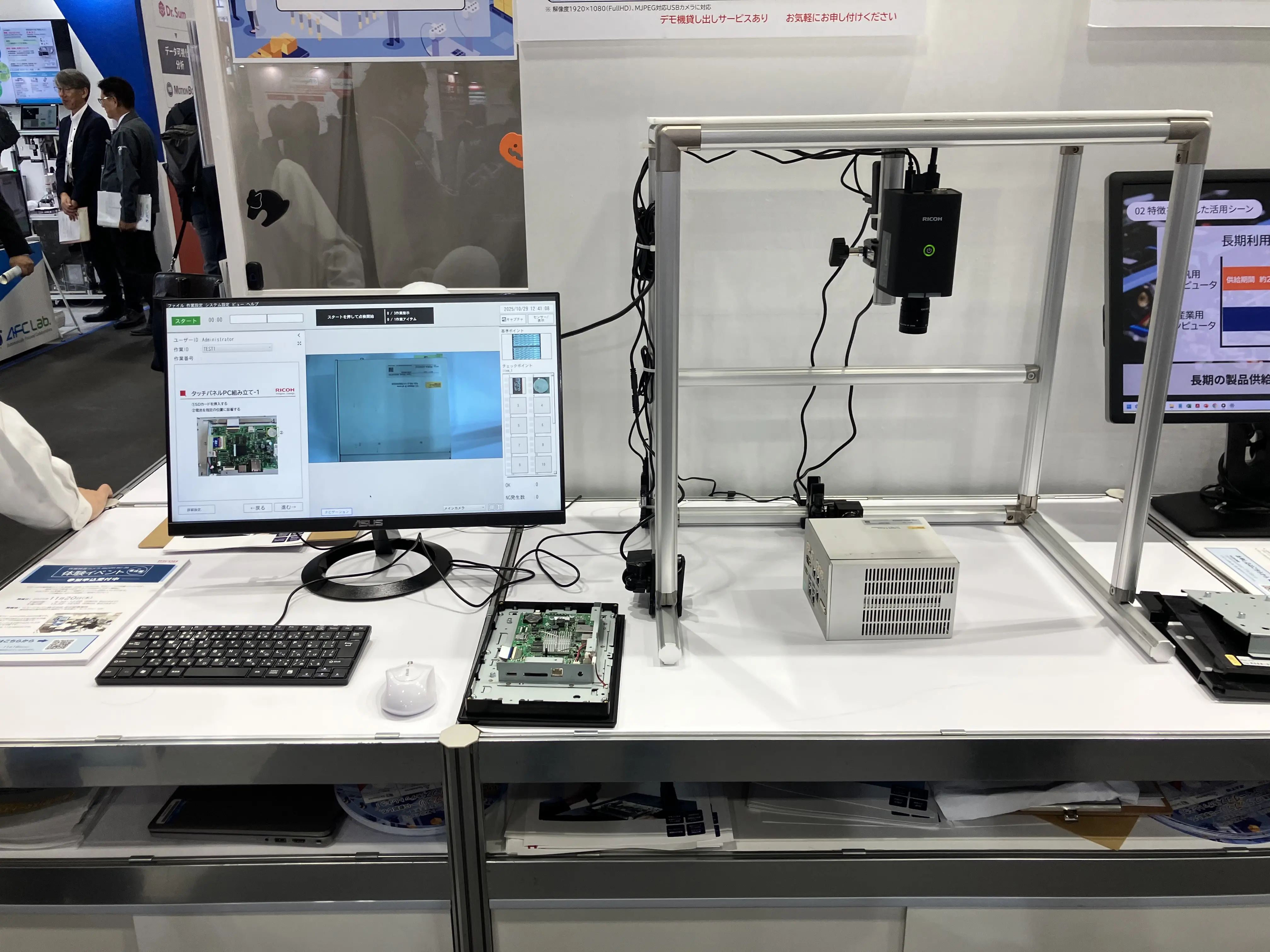 RICOH SC-20は手作業の工程の品質を検査するカメラです。ネジ止めやラベル貼付の有無などを読み取って正しく作業できたかを確認します。カメラ本体にモニター、キーボード、マウスを接続することで簡単にセットアップできます。