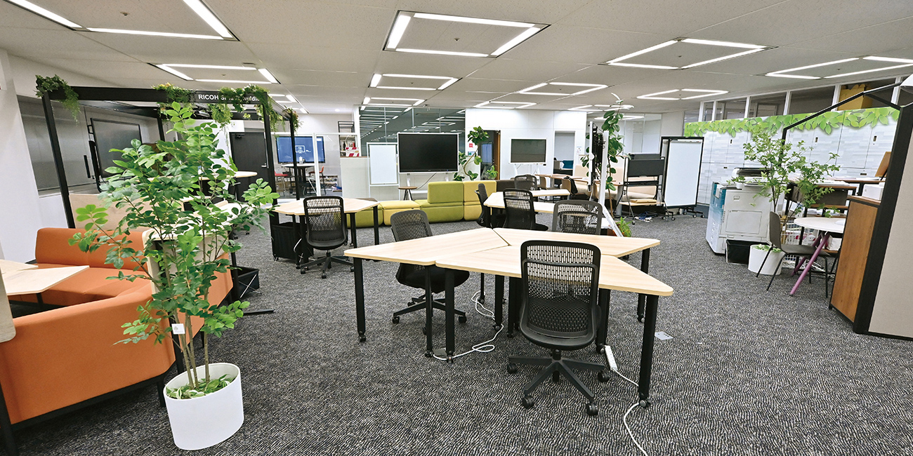 “はかどるオフィス”をテーマにリコージャパンならではの働き方に着目し、リニューアルを実施。デジタルツール、仕組みを取り入れてスマートハドルを実現。