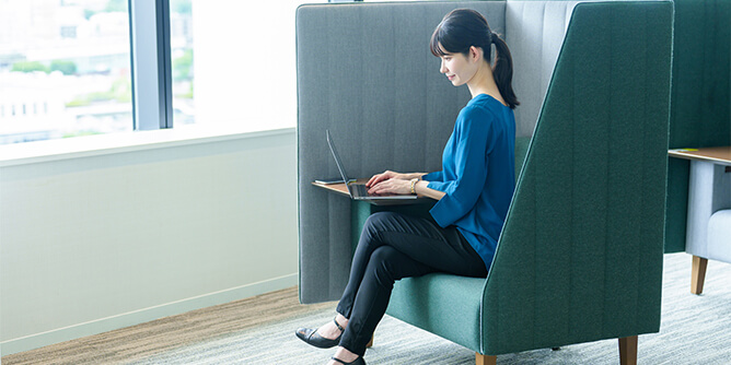一般的に、フレキシブルオフィスは他の利用者と共有するオープンスペースと、プライバシーが確保された個室に分かれており、用途に応じて使い分けることができます。
