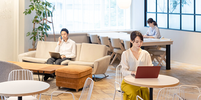 フレキシブルオフィスの利用により、従来のオフィスのスペースが不要になるため従来オフィスの賃料や光熱費の削減につながります。