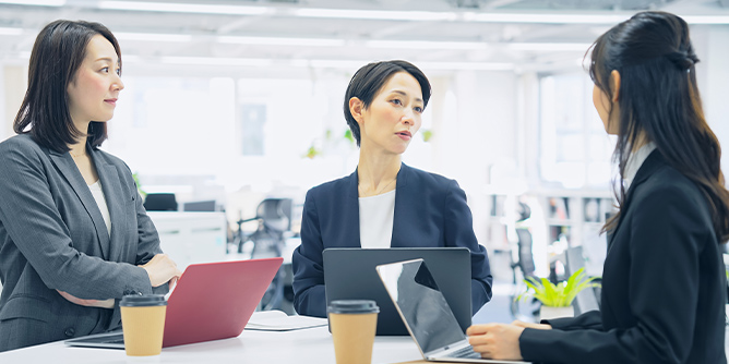 フリーアドレスでは、さまざまな人と空間を共有することになります。ちょっとした声かけから新たな人間関係が生まれることもあり、従業員同士のコミュニケーションの活性化が期待できます。