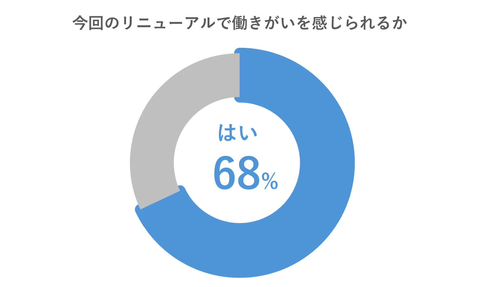 従業員向けアンケート調査結果では、働きがいを感じられている社員は全体の68%となり、仕事へのモチベーションアップや会社ビジョン・自身の役割の理解度向上につながっていることがわかりました。
