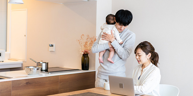 「仕事と生活の調和」を意味する「ワークライフバランス」を推進することで、性別・年齢・ライフスタイル問わず、働き続けやすい職場環境を作ります。時短勤務や在宅勤務など、ライフスタイルに合ったフレキシブルなワークスタイルを提供することは、幸せに働き続けられるための環境づくりの一つになります。