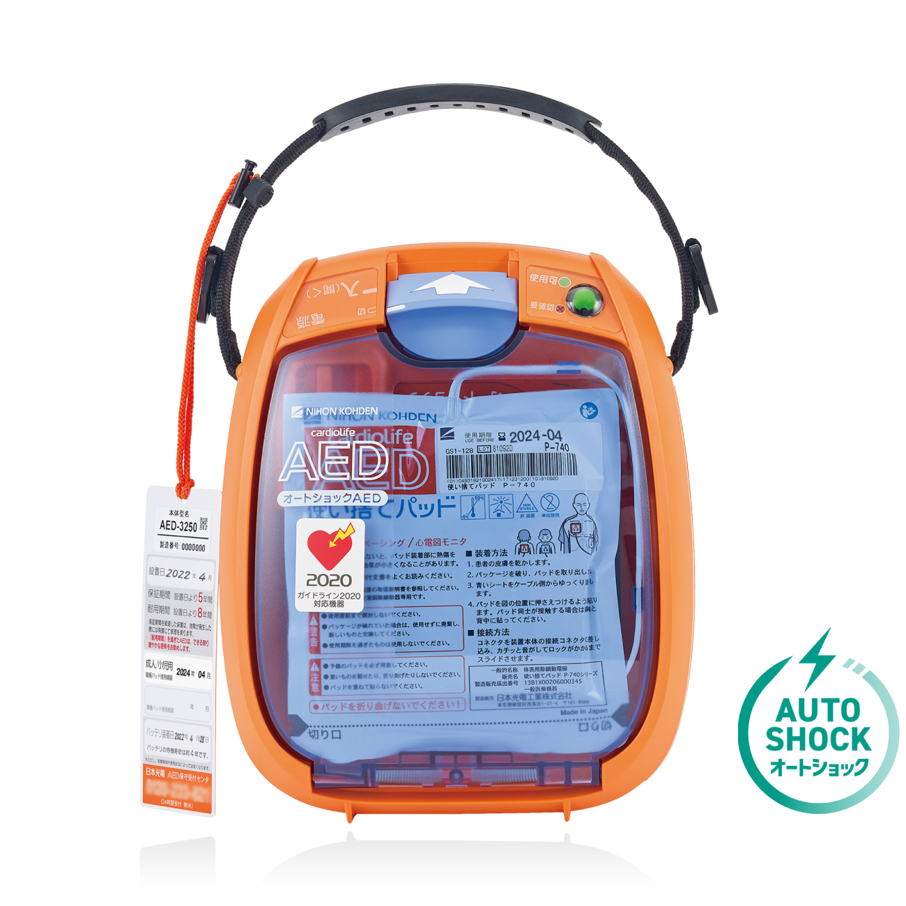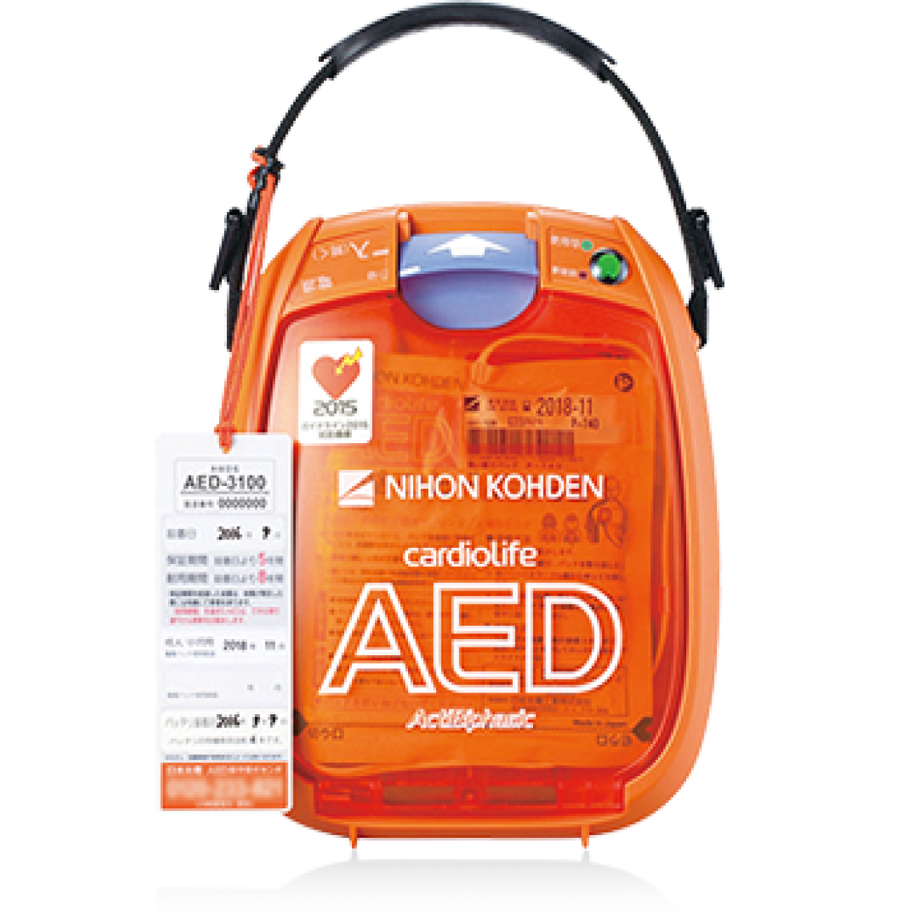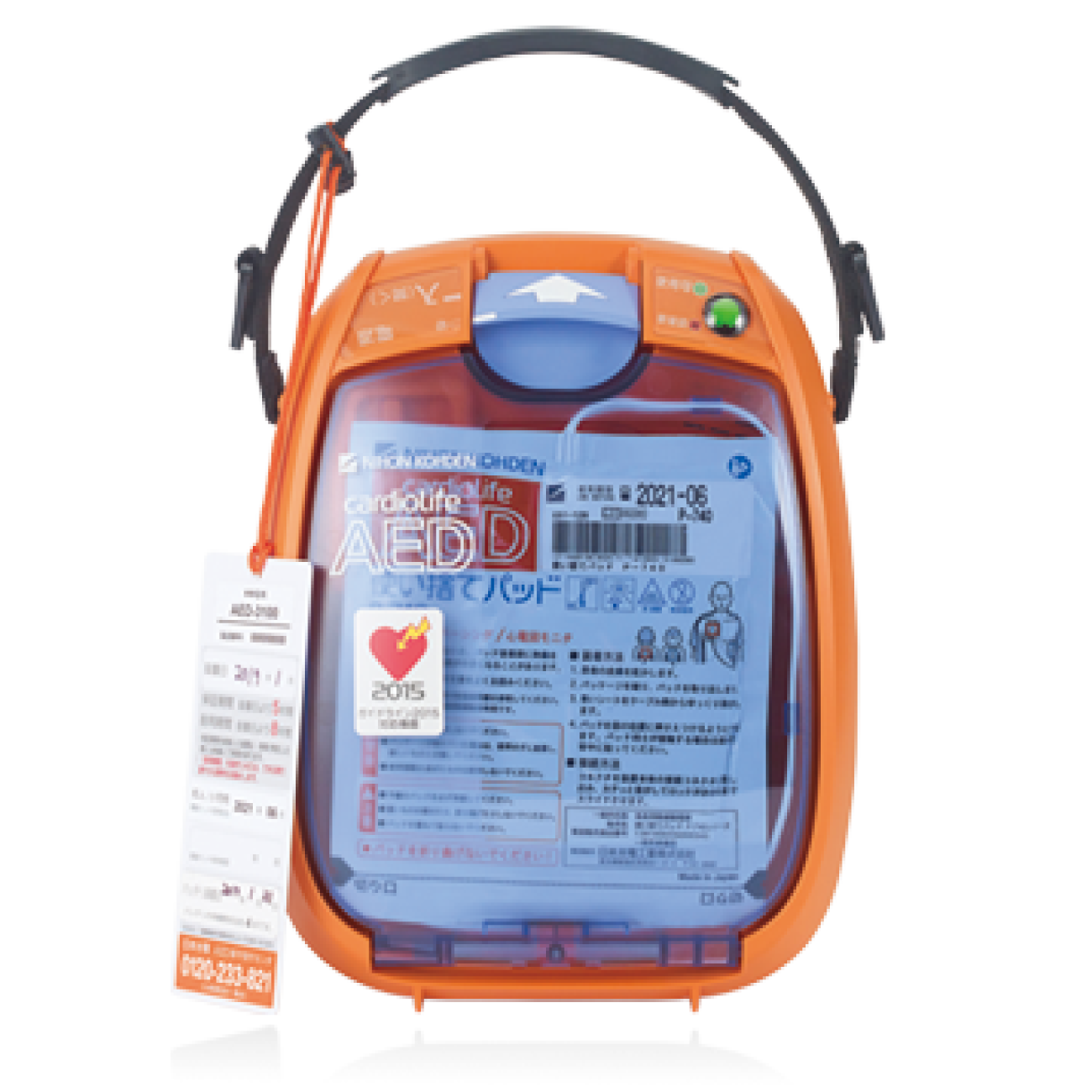 AED(Automated External Defibrillator;自動体外式除細動器)とは、心臓がけいれんし血液を流すポンプ機能を失った状態(心室細動)になった心臓に対して電気ショックを与え、正常なリズムに戻すための医療機器です。