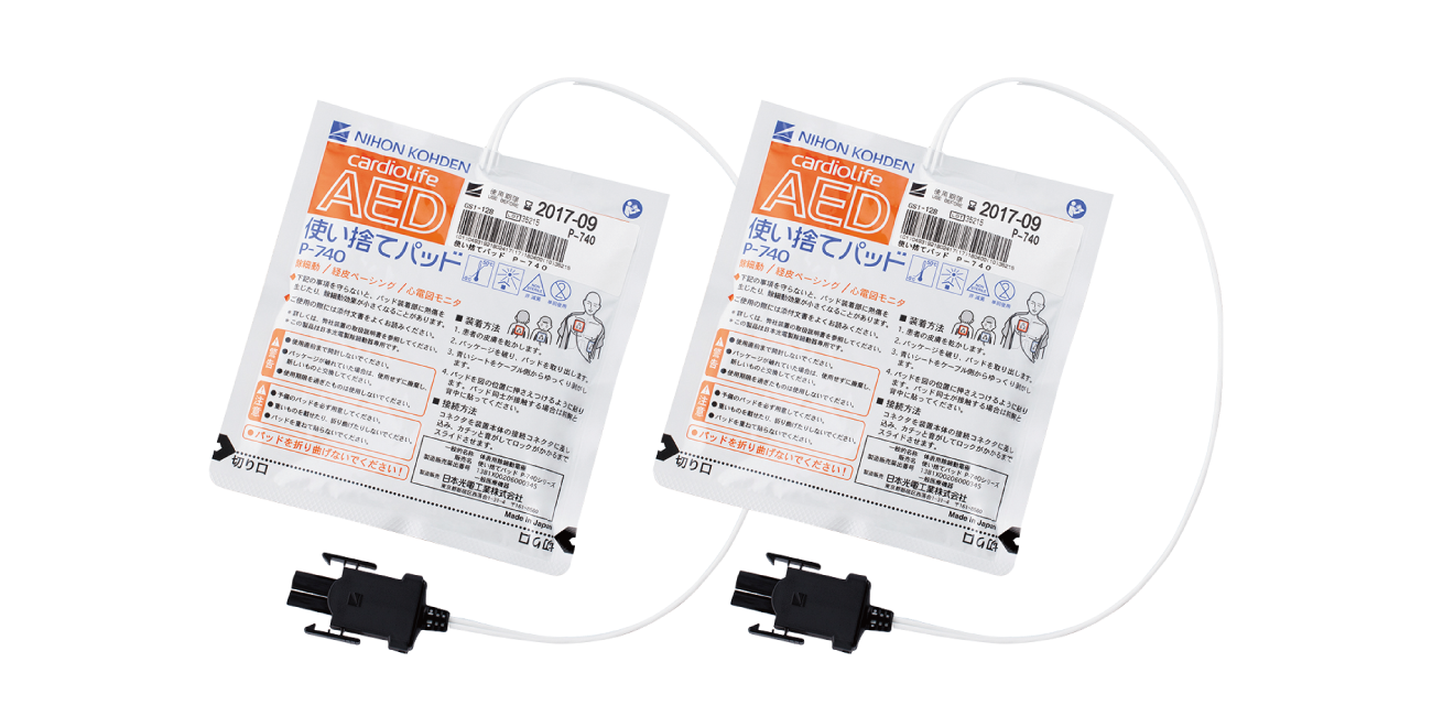 JRC(日本版)ガイドライン2010対応機器より1歳未満の乳児に対してもAEDを使用できるようになりました。未就学児(1歳未満の乳児を含む)へは未就学児モード※に切り替え、パッド同士が触れ合わないように注意して未就学児・小学生~大人共通パッドを使用してください。