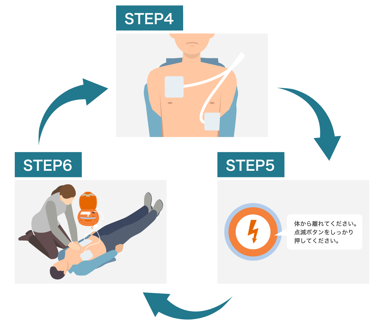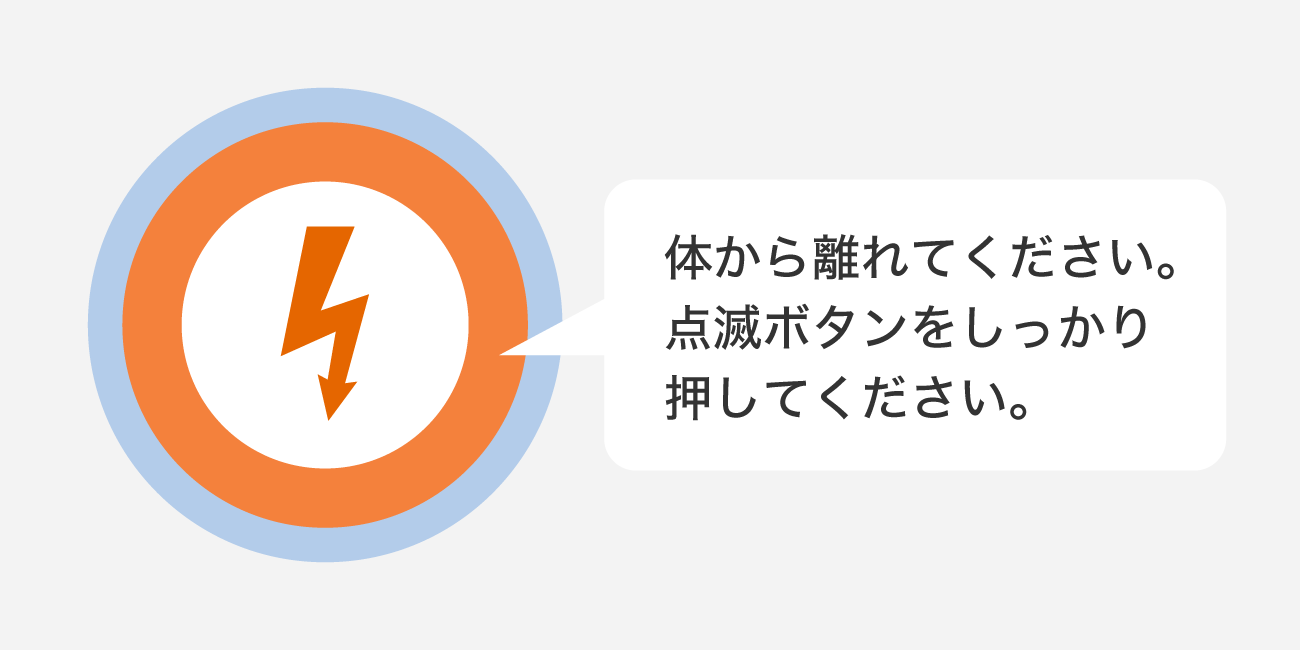周囲の安全を確認し、アナウンス後速やかにショックボタンを押します。