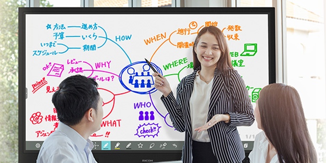 各種設定をした後、お使いいただけます。RICOH Collaboration Board Cloudをご利用する場合は、ご契約手続きが必要です。(無償)