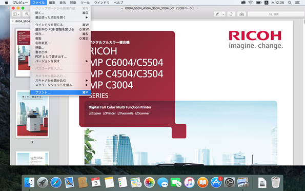 アプリケーションの[ファイル]メニューから[プリント]を選択します。