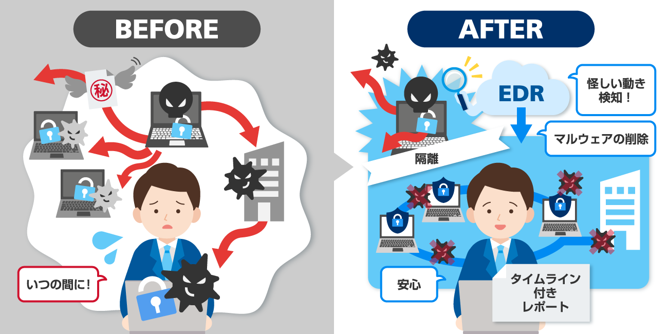 では、こうしたエンドポイント対策を具体的にどのようなシーンで活用できるのかを見てみましょう。