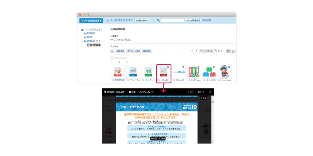 従来はExcelファイルで管理していた情報を「サイボウズ Office」に集約することができます。