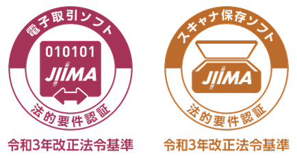 「電子取引ソフト法的要件認証」と「電帳法スキャナ保存ソフト法的要件認証」を取得しました。