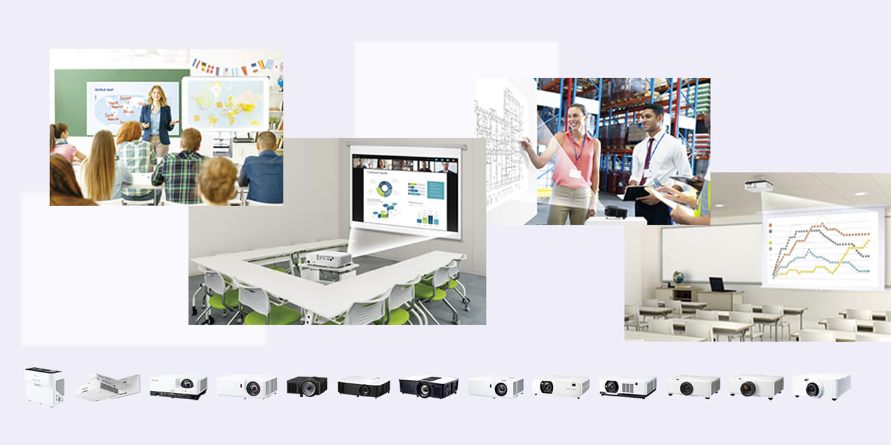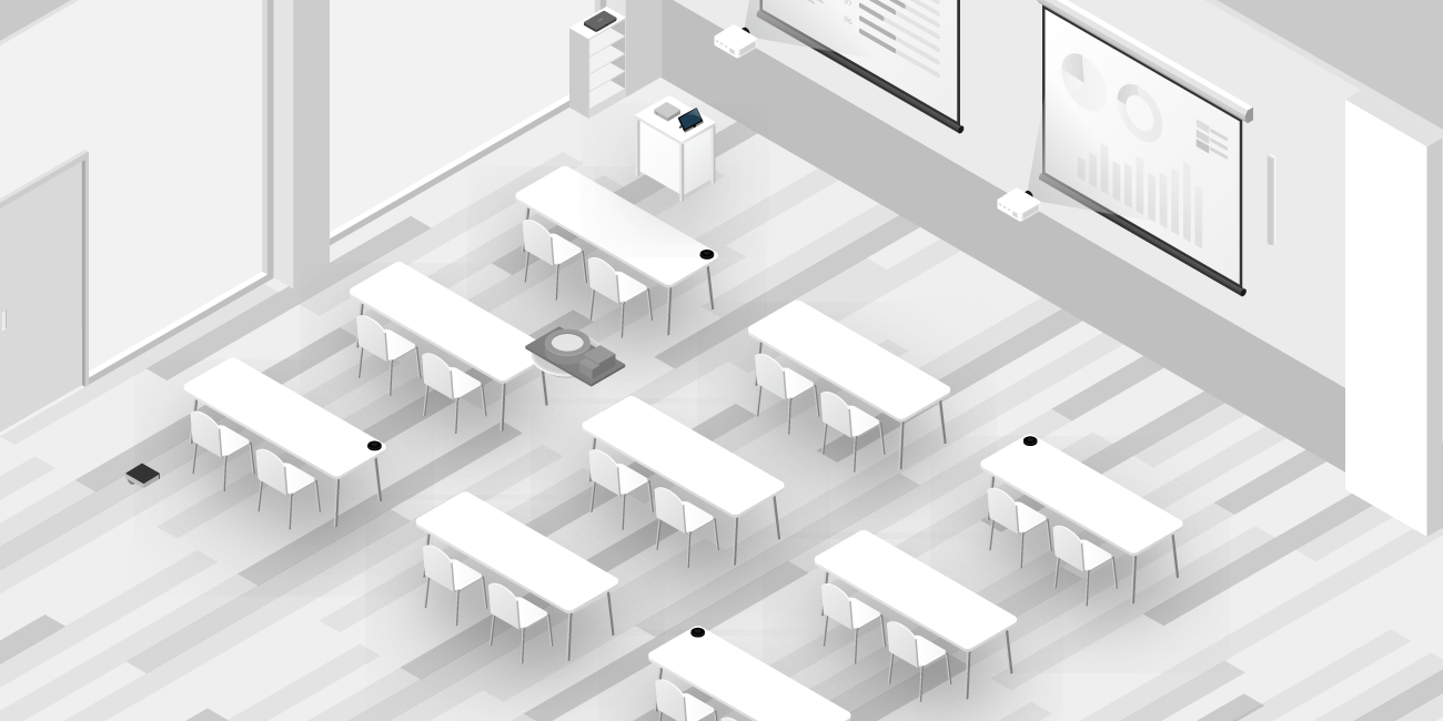 小規模なミーティングスペースから大規模なセミナールームまで、様々なスペースに対応した製品ラインアップを揃えています。お客様の環境に合わせた機器の選定ができます。