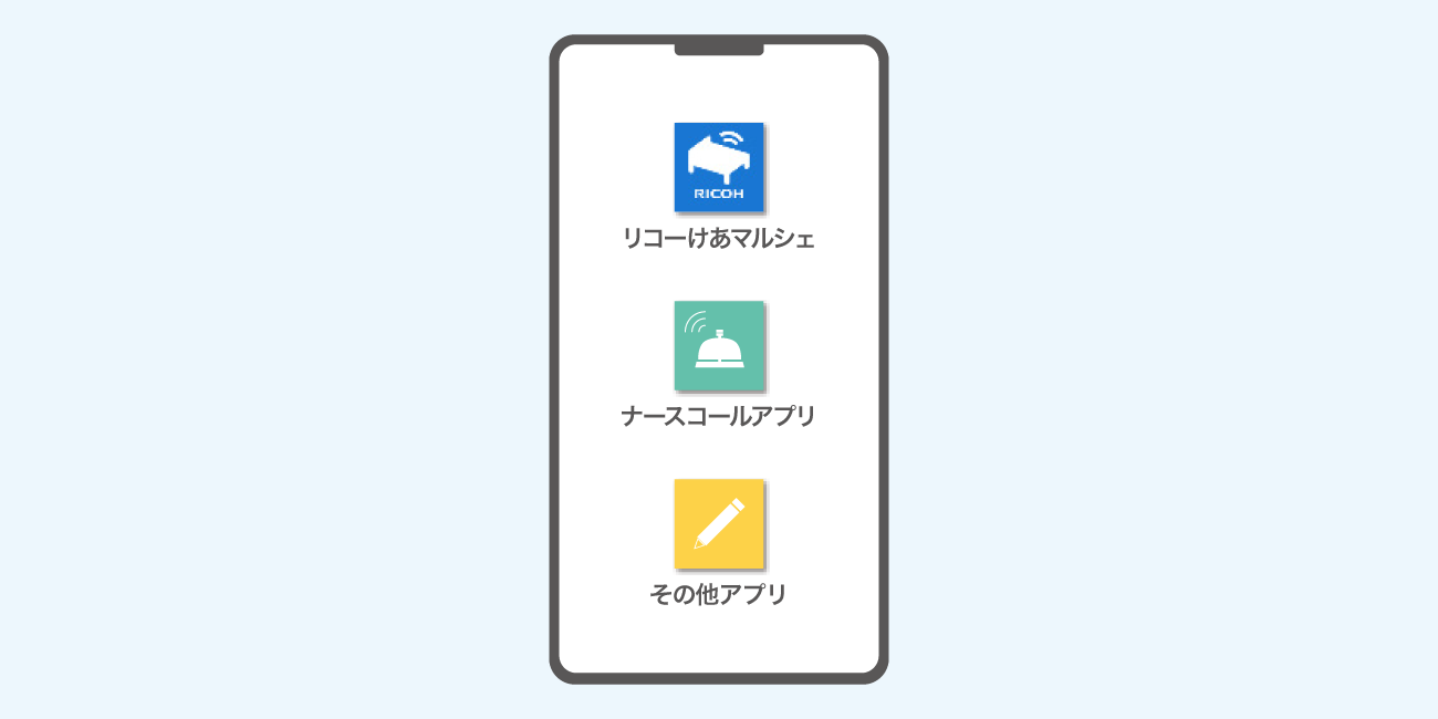 利用者の自立を支援する。職員の業務負担を減らす。リコーけあマルシェ for 施設介護サービスは柔軟なシステムで効率的なケアをかなえます。