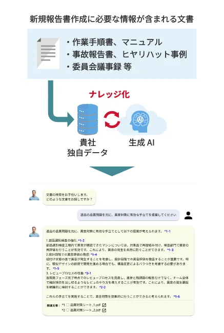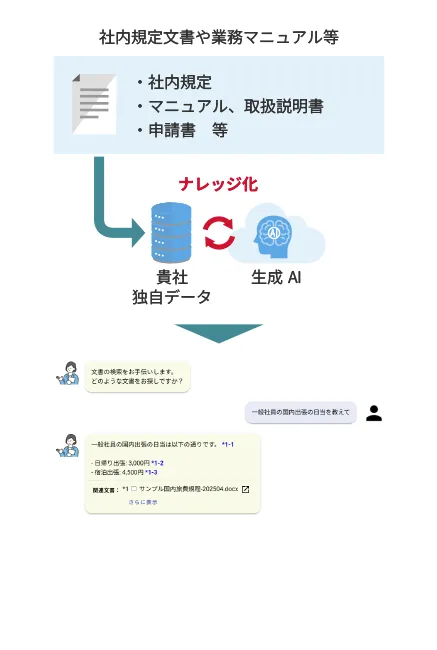社内規定やマニュアルなどの情報をAIが読み込み、