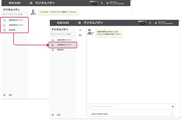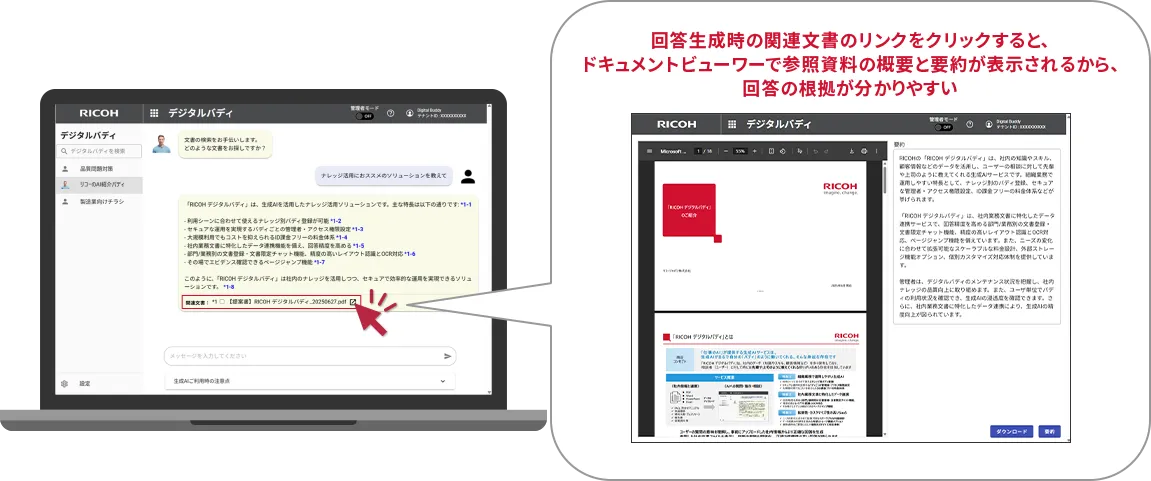 リコーが提供する生成AIを活用した社内ナレッジ活用サービスです。