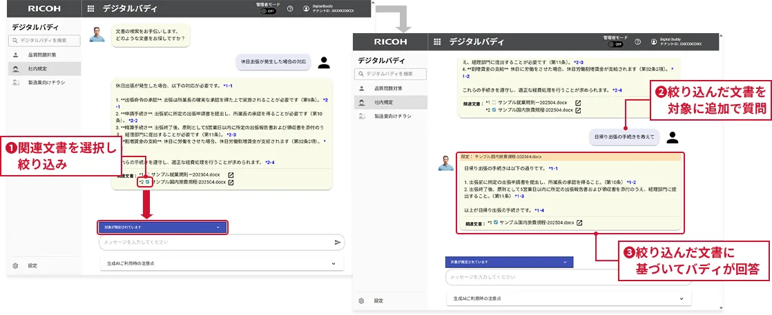 関連文書を絞り込むことで、より精度の高い情報を引き出すことができ、業務の効率性と信頼性を大幅に向上