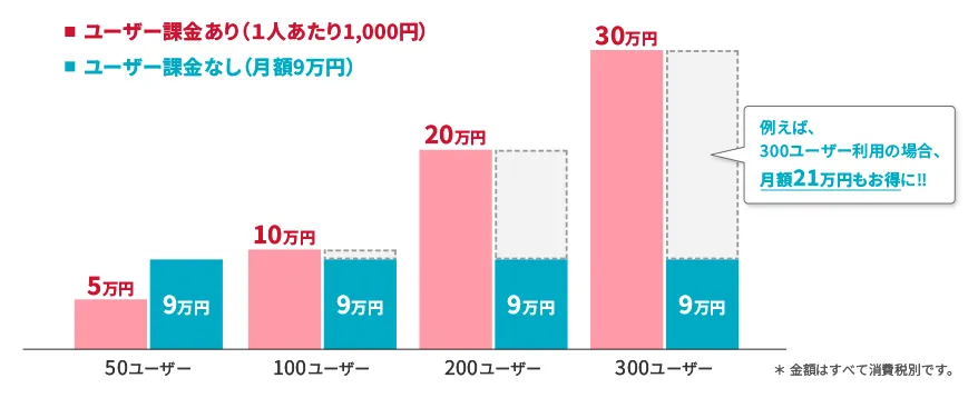 ユーザー数課金 | なし(同時接続数に上限があります) |