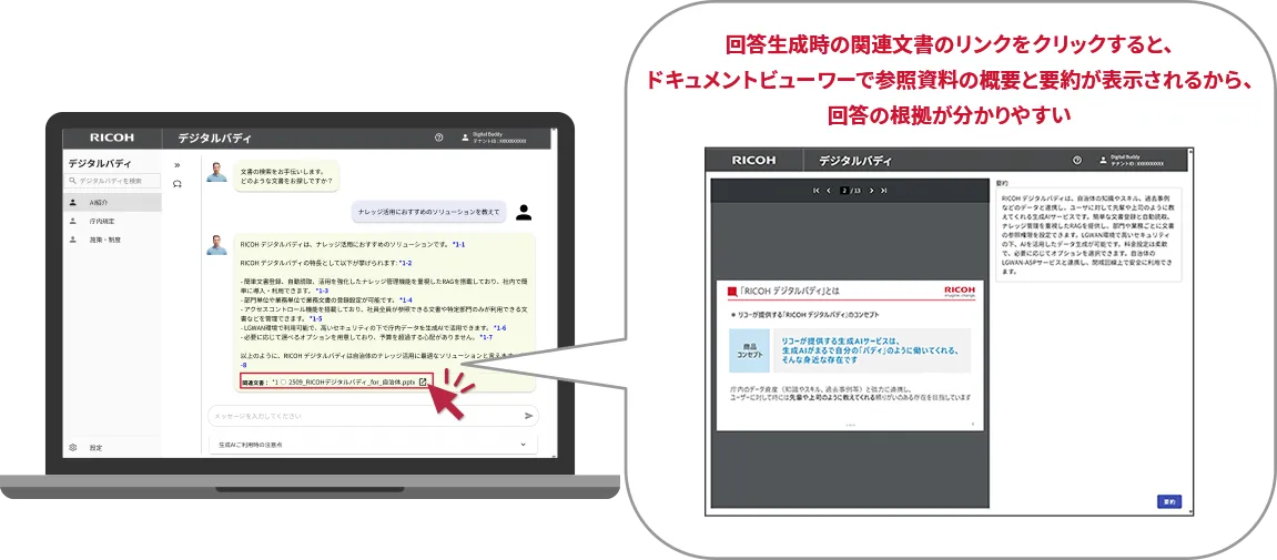 「RICOH デジタルバディ for 自治体」は、LGWAN環境で利用可能な自治体専用の生成AIサービスです。