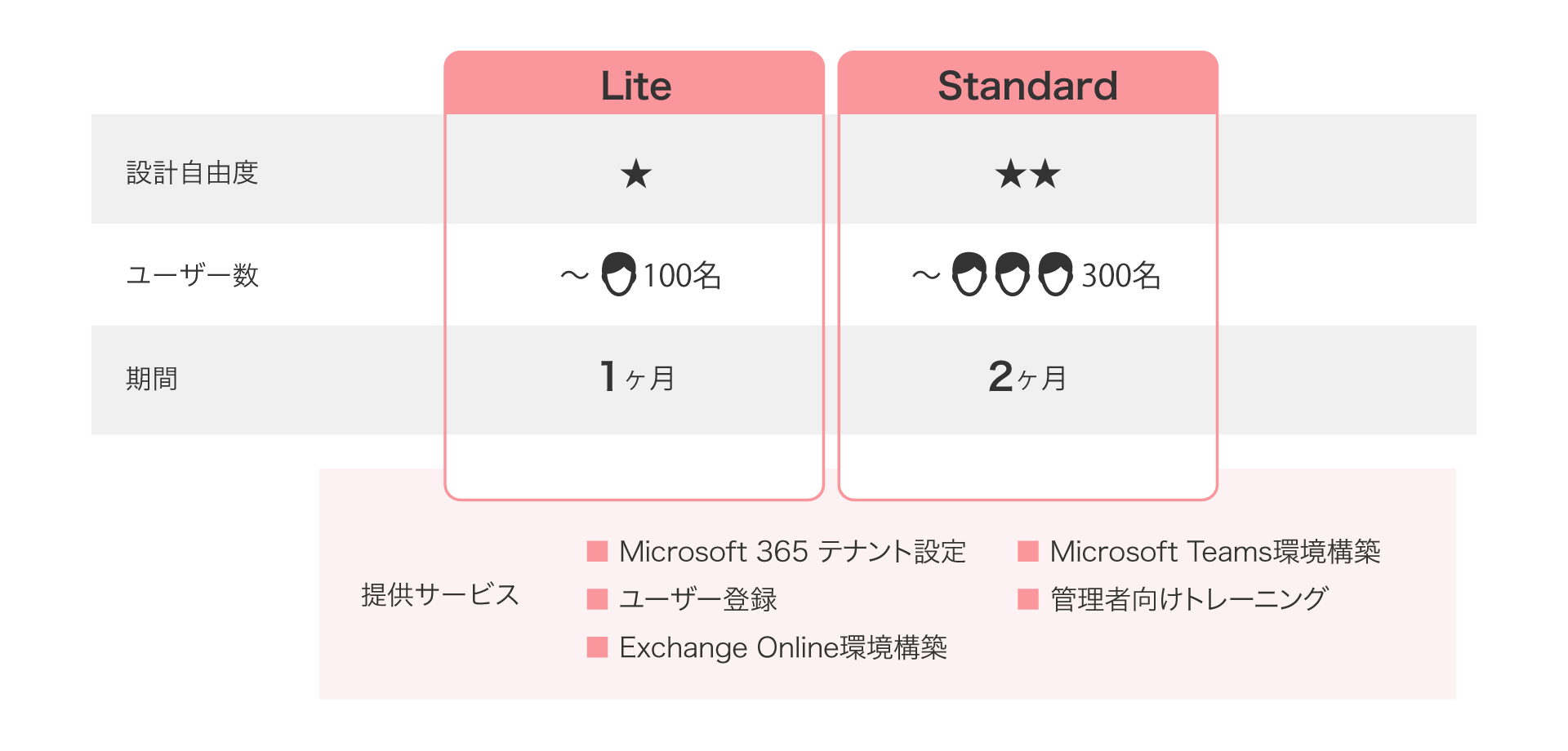 構築期間:約1ヵ月、設計:リコージャパン推奨設定、対象ユーザー数:100名まで。
