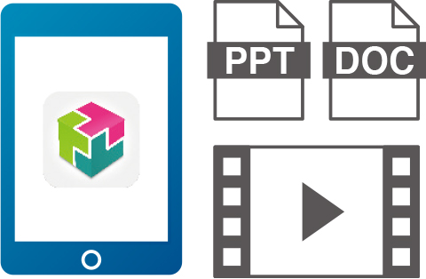 スマートデバイス用アプリケーション「Docs Connect」は、PowerPoint®やWordなどの文書閲覧だけではなく、動*の再生も可能です。