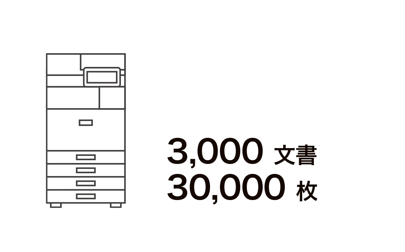 ドキュメントボックスに最大3,000文書、1文書あたり2,000ページまで*蓄積できます。