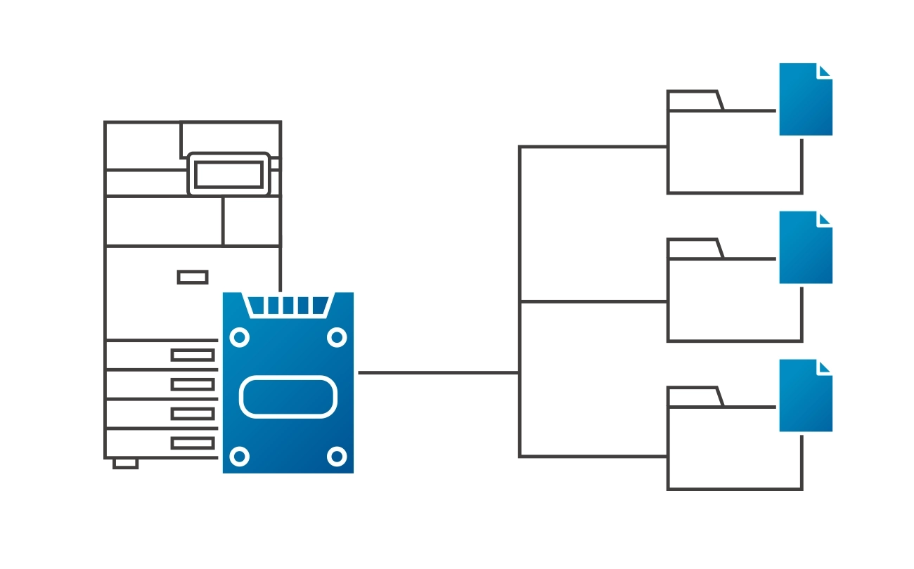 電子化したデータは複合機本体に内蔵された256GBのSSDストレージへ保管できます。また、オプションの拡張SSD タイプM52を装着すれば、本体ストレージを1TBまで拡張可能です。