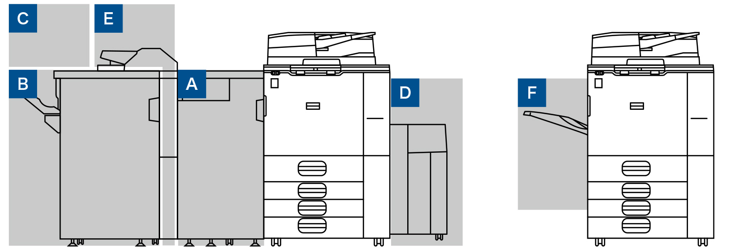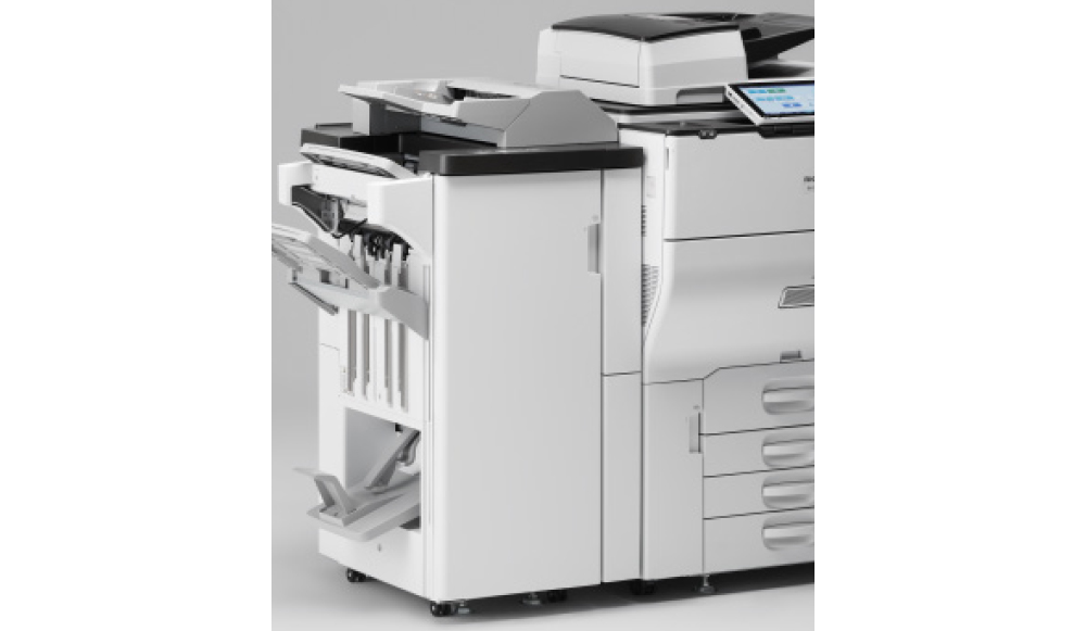 3,000枚(A4ヨコ)積載できるフィニッシャー。65枚のステープル、丁合、仕分け、2穴パンチ機能に対応しています。