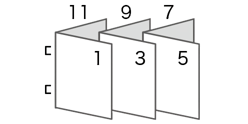 製本機能を利用すると、オリジナルの小冊子やパンフレットを手軽に作成できます。複数枚の片面原稿を製本印刷すると、用紙を重ねて折ったときページ順になるよう印刷できるのでコスト削減も可能です。また、集約機能との組み合わせも行なえます。