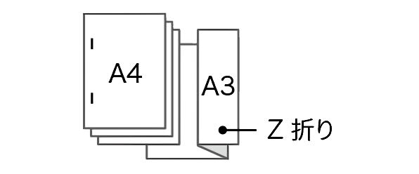 多彩なサイズの出力紙を二つ折り、Z折り、外三つ折り、内三つ折り、単純四つ折り、観音四つ折りすることが可能です。さらに、二つ折り、外三つ折り、内三つ折りは3枚までの重ね折りをすることもできます。