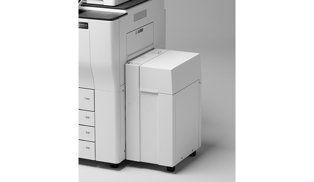 3,000枚(A4ヨコ)積載できるフィニッシャー。100枚のステープルが可能で、紙揃え機能を標準装備しています。また、丁合、仕分け、2穴、4穴パンチ機能*に対応しています。