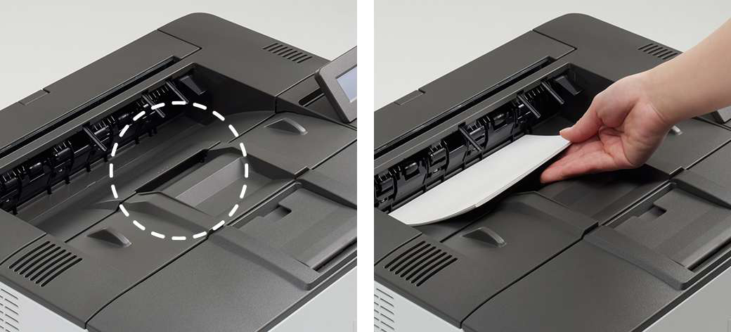 机の下やラック上に設置した場合でも、用紙を取りやすいよう「くぼみ機構」を採用。これにより、A5 などの小さな用紙サイズも、スムーズに取ることができます。