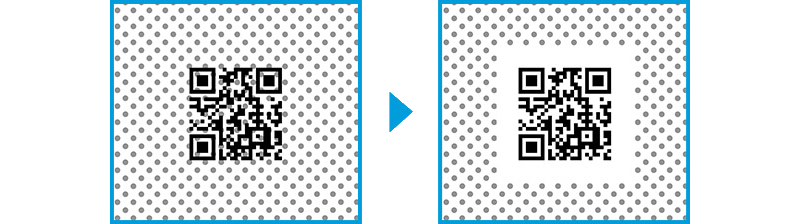 地紋印刷時に地紋を除外するエリアを指定できます。これにより、QRコードやバーコードなどの入った文書も読み取りに支障なく地紋印刷が可能となります。