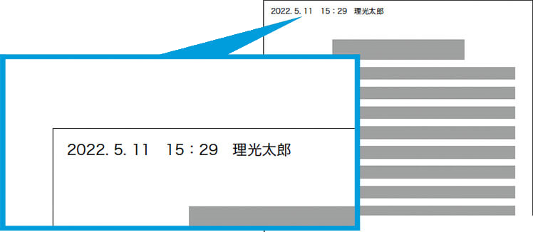 印刷物による情報漏えいを抑止するために、印刷日時、出力者情報*などの情報を強制的に印字できます。