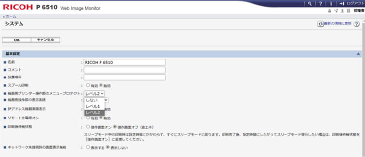 不用意な操作でプリンターの設定内容が変更されないように、操作パネルはWeb Image Monitorからロックし、プロテクトすることができます。