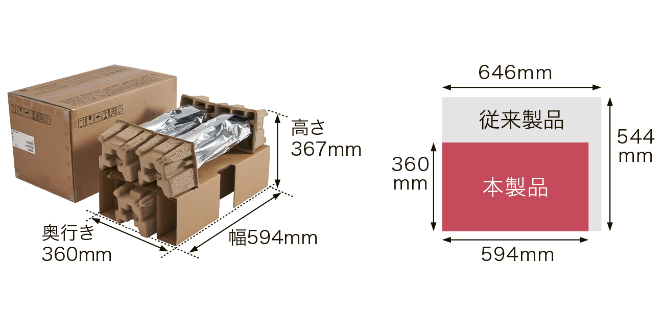 カラードラムユニット梱包箱を形状変更し、底面積を約40%削減*3しました。バックオフィスのさらなる有効活用に貢献できます。