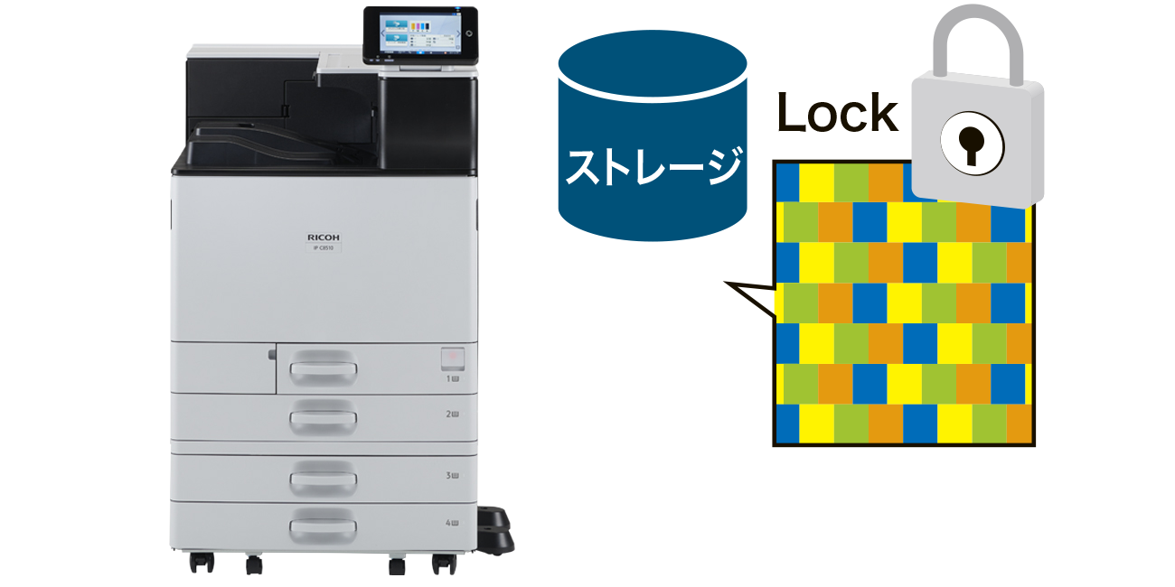 アドレス帳データ、認証情報、蓄積文書などは、データの記録時に暗号化するため、本体廃棄時などのストレージの物理的盗難などによる情報漏えいを抑止できます。