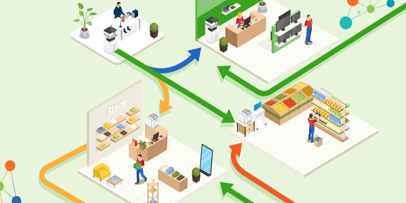 RICOH MightyPOP6と連携して、POPデータの自動振り分け印刷や一斉印刷が可能です。各地区の店舗の特性に合わせたPOPやチラシのデータを本部から配信し、各店舗で印刷できるため、配送費の削減にも貢献できます。
